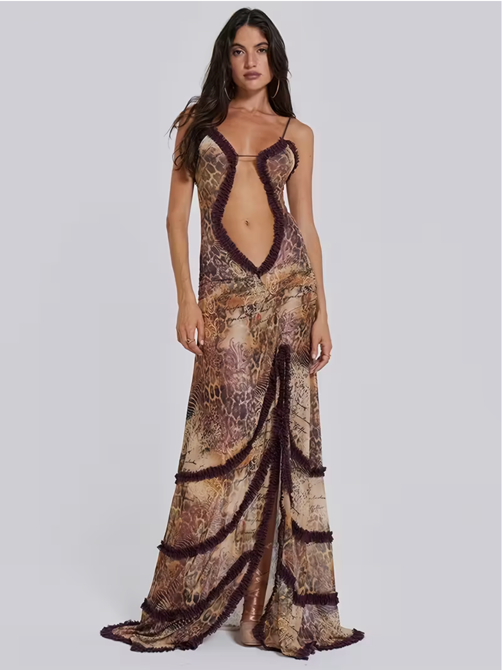 This elegant black mesh dress combines gothic style with delicate pleated lace detailing for a striking silhouette. Designed to highlight the shoulders, it offers a sophisticated yet edgy look perfect for evening events or special occasions. The breathable mesh fabric ensures comfort, while the intricately pleated lace adds a refined texture that enhances the dress's distinctive character. Ideal for those seeking a bold, fashion-forward piece with expert craftsmanship.