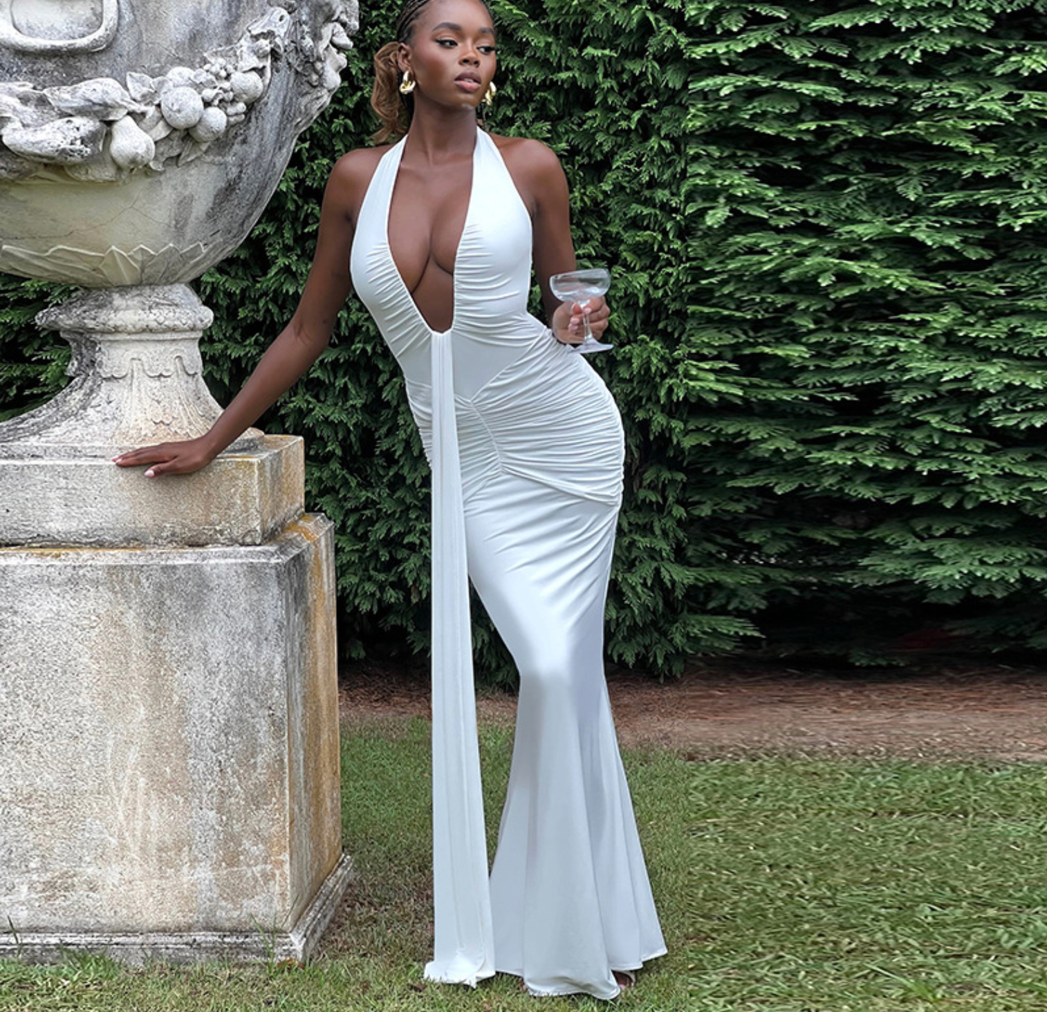 Elevate your wardrobe with this elegant women's dress featuring a sophisticated V-neck and a backless design that beautifully enhances your silhouette. Crafted with delicate lace and a pleated long skirt, it combines femininity and grace for formal occasions or stylish events. The thoughtfully designed cut ensures both comfort and a flattering fit, making it a timeless addition to any fashion collection. Ideal for those seeking a refined and captivating look.